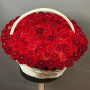 Композиция из 101 красной георгины в корзине в Качканаре