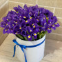 45 фиолетовых ирисов в шляпной коробке в Качканаре