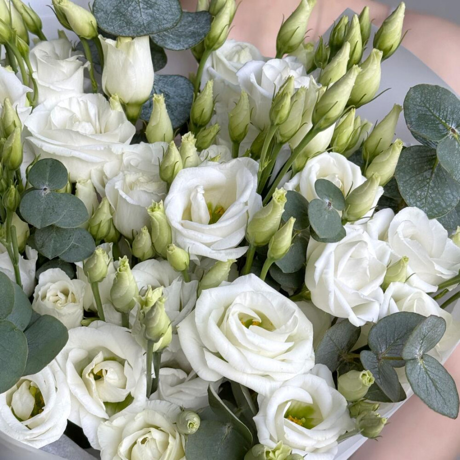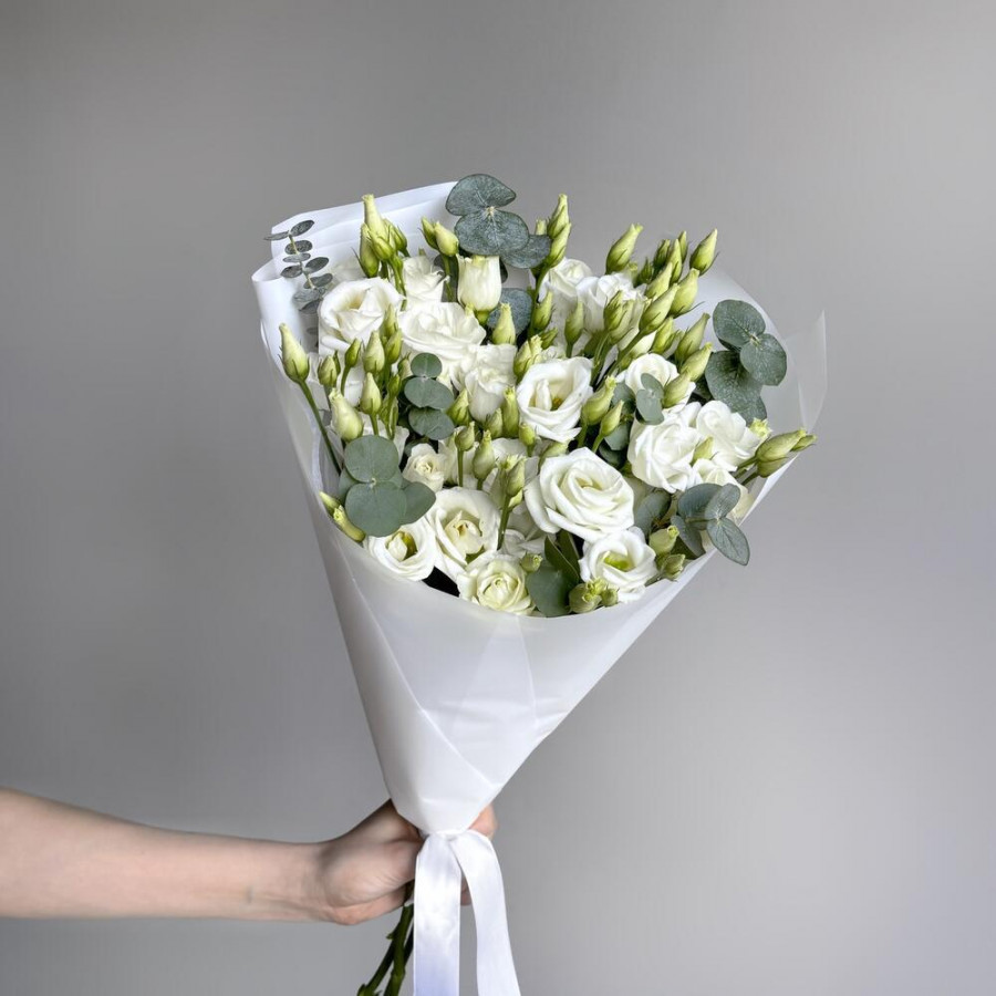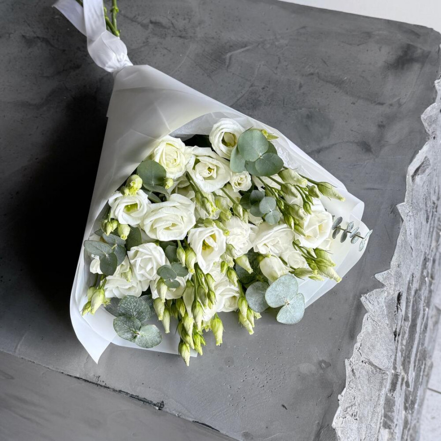 Букет из 7 белых эустом и эвкалипта в Качканаре