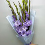 На фото букет из 9 лиловых гладиолусов. В составе: гладиолус 9 шт, дизайнерская упаковка 1 шт, . Все цветы свежие и ароматные, букет красиво оформлен и отлично подходит для подарка. Доступна доставка цветов или самовывоз.