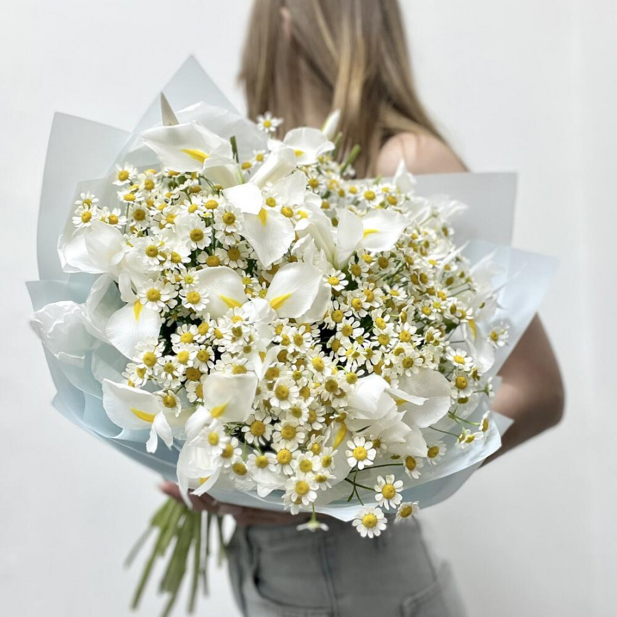 Букет из белых ирисов и ромашек в Качканаре