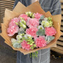 Букет из розовых гортензий и белых эустом