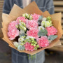 Букет из белой эустомы и розовых гвоздик в Качканаре