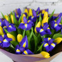 Букет из синих ирисов и желтых тюльпанов в Качканаре