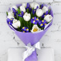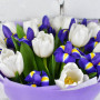 Букет из синих ирисов и белых тюльпанов в Качканаре