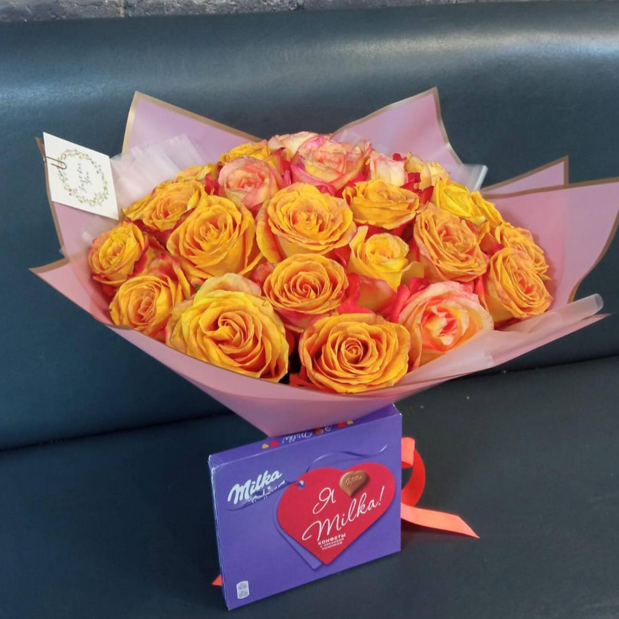 Перед выездом курьера пришлём фото свежесобранного букета, чтобы вы были спокойны