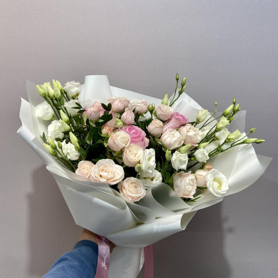 Букет из пионовидных роз и белых эустом в Качканаре