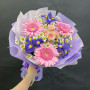Букет из розовых гербер, ирисов и ромашек в Качканаре